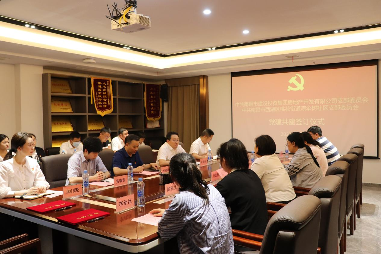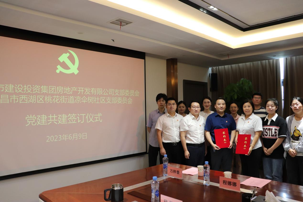 为积极探索创新党建工作新模式,探索联合党建新路径,努力形成组织共建、资源共享、发展共商的党建工作新局面,6月9日,南昌市华体育网页版登录入口_华体育(中国)集团房地产开发有限公司党支部与南昌市西湖区桃花街道凉伞树社区党支部举行了党建共建签约仪式。公司党支部委员、总经理万勇林,党支部委员、副总经理何强科,总经理助理吴瑞雪、技术顾问陈保福出席,双方单位共16名党员参加。